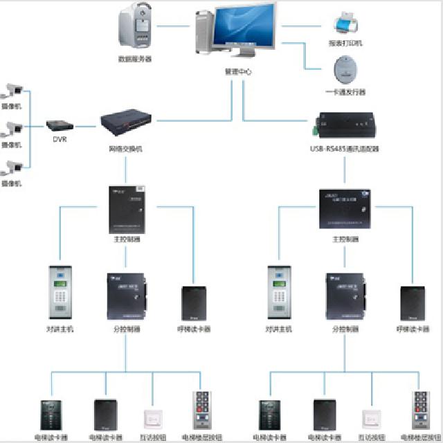 電梯門禁控制系統(tǒng),是在不改變電梯操作面板的硬件基礎(chǔ)上,通過對電梯門禁輸出的繼電器干結(jié)點(diǎn)來控制電梯樓層按鈕的開 通和關(guān)斷。系統(tǒng)對于乘梯人員進(jìn)行發(fā)卡授權(quán),憑卡刷卡操作到達(dá)指定樓層。來訪人員通過呼叫系統(tǒng),受訪人確認(rèn)后給予電梯權(quán)限信 號(hào),自動(dòng)到達(dá)要訪問的樓層。來訪人也可以通過總臺(tái)登記,領(lǐng)取臨時(shí)卡就可使用電梯。業(yè)主通過刷卡和按互訪按鈕,能到達(dá)任意樓 層,與其他業(yè)主進(jìn)行互訪。